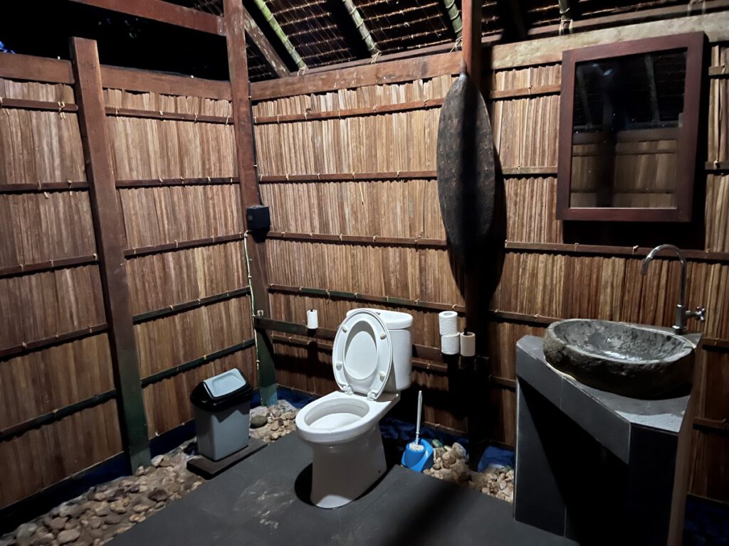 The Papuan and Superior versions all have a shared bathroom and toilet, the ‘Deluxe’ version has its own private bathroom with shower and toilet inside the cottage and an outdoor terrace with lounge furniture.