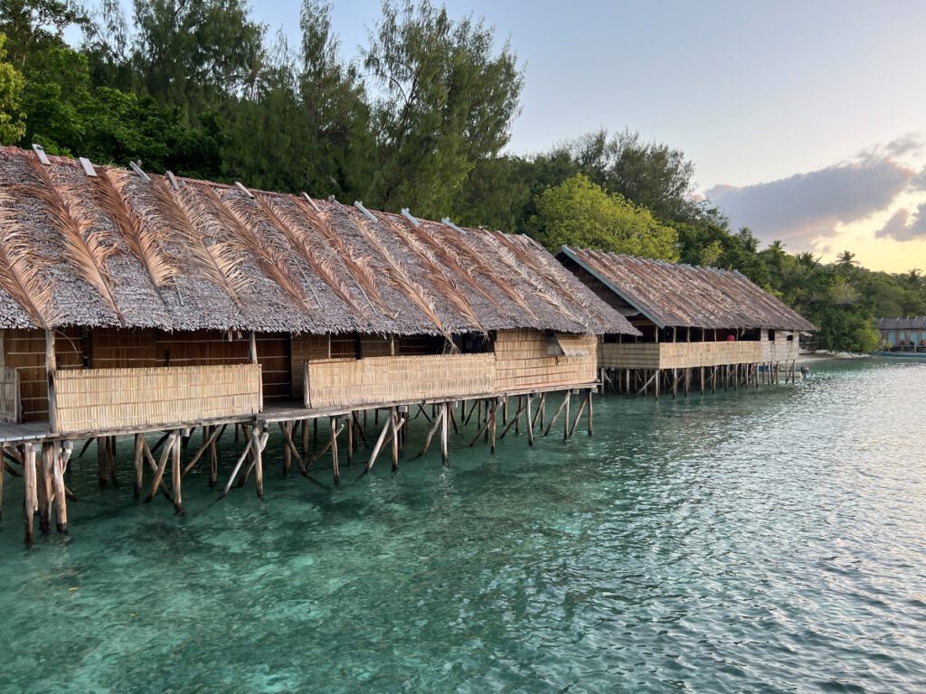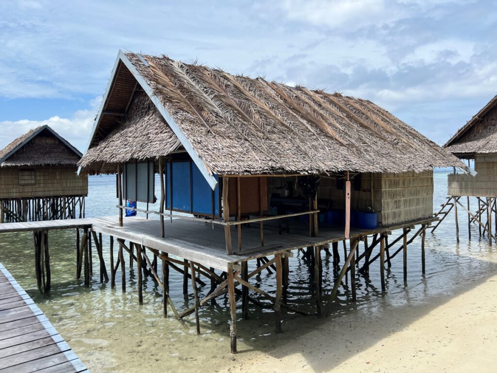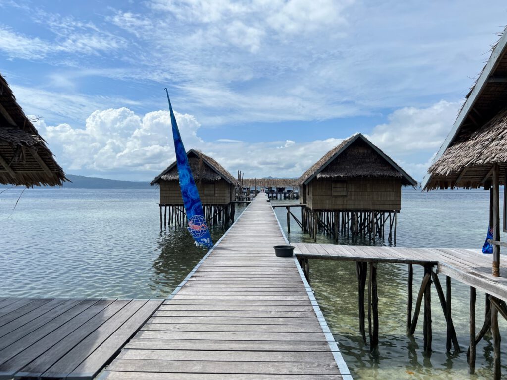 At the beginning of the pier you’ll find the ‘briefing room’ for the divers, the dive manager’s office and the ‘Papuan style’ cottages.