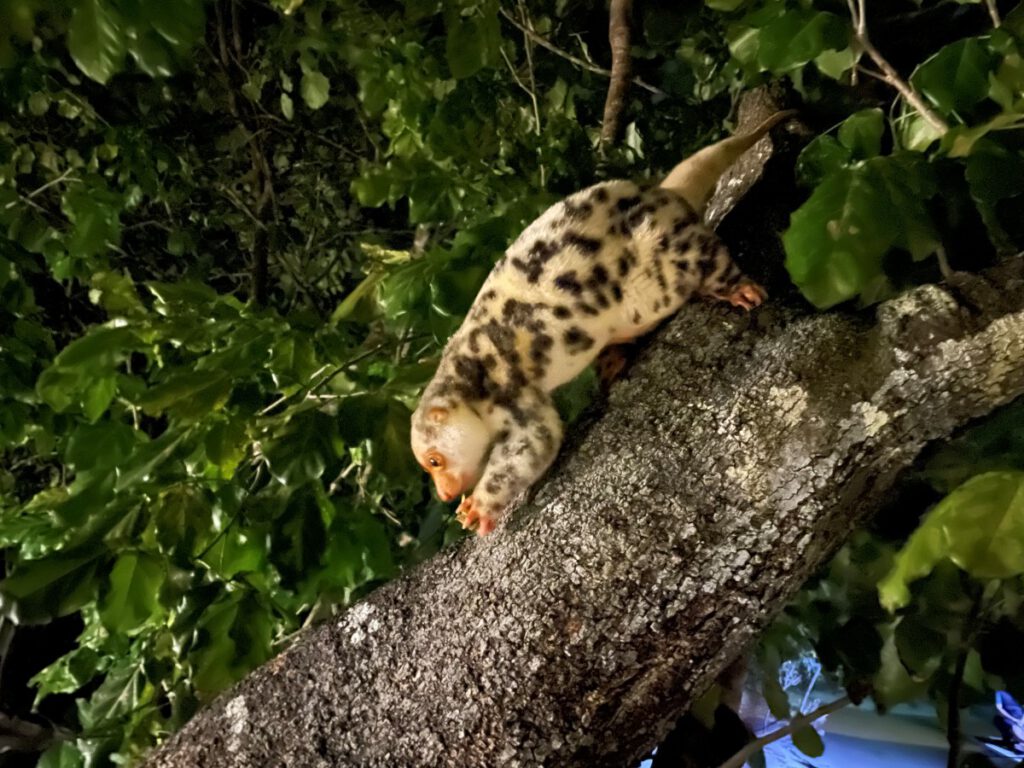 Almost every evening during diner time a cuscus (Spilocuscus papuensis) comes over to visit the restaurant.