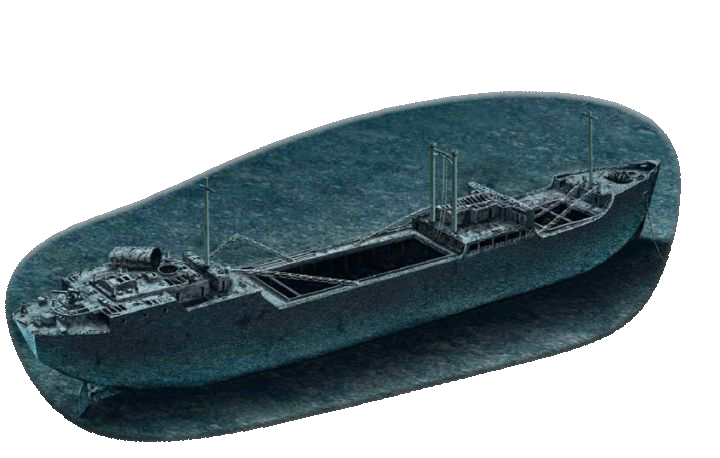 The ship’s identity was possible by the discovery of associated ceramics found aboard the wreck bearing the logo of the ship’s commercial owner Toyo Kisen Kaisha.