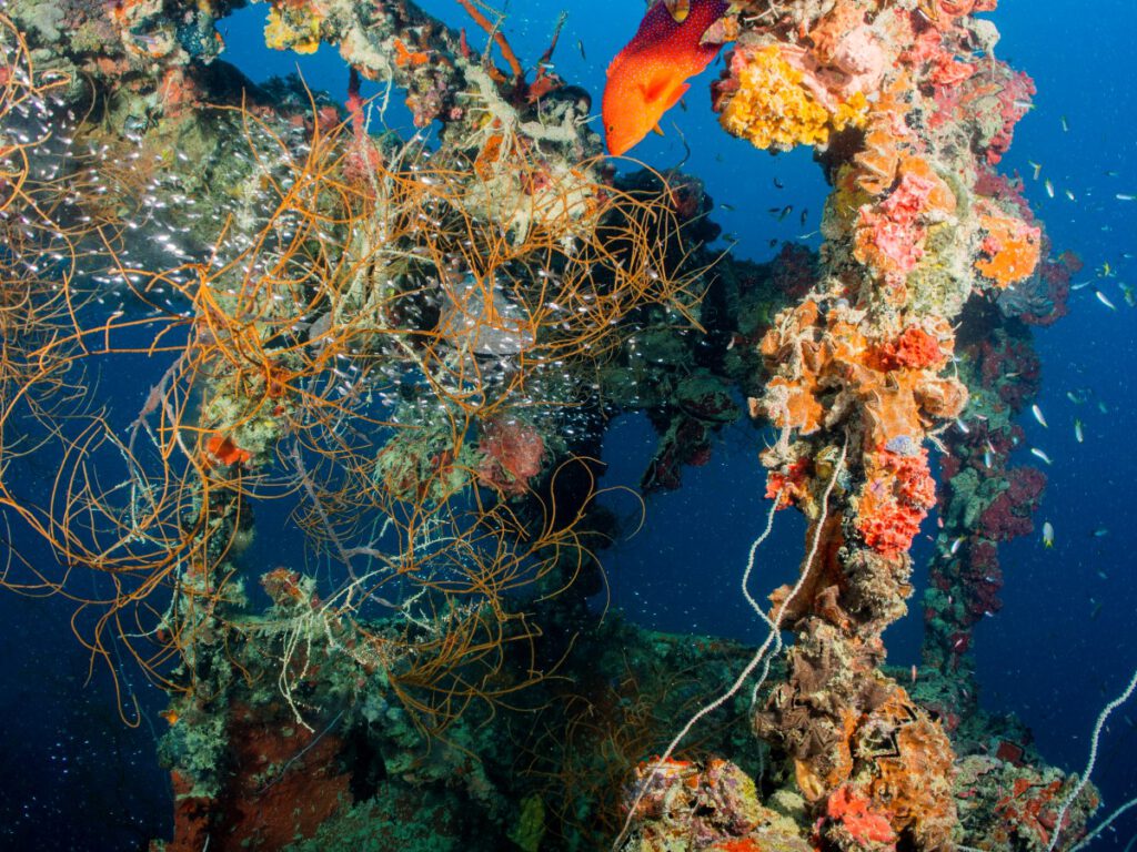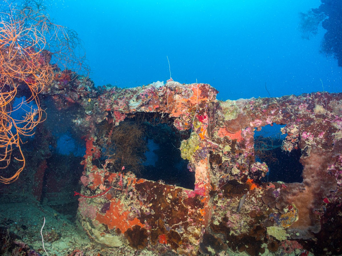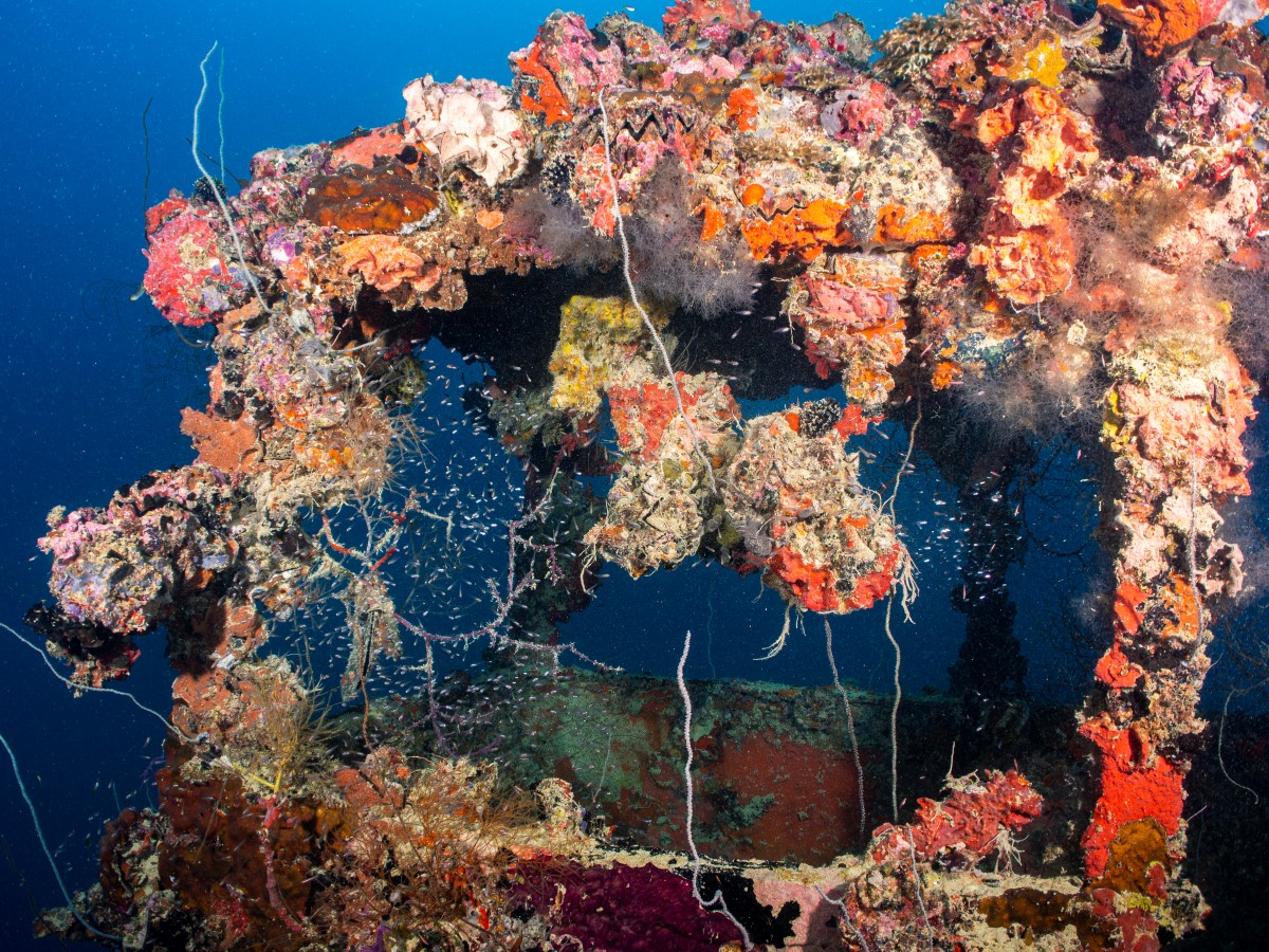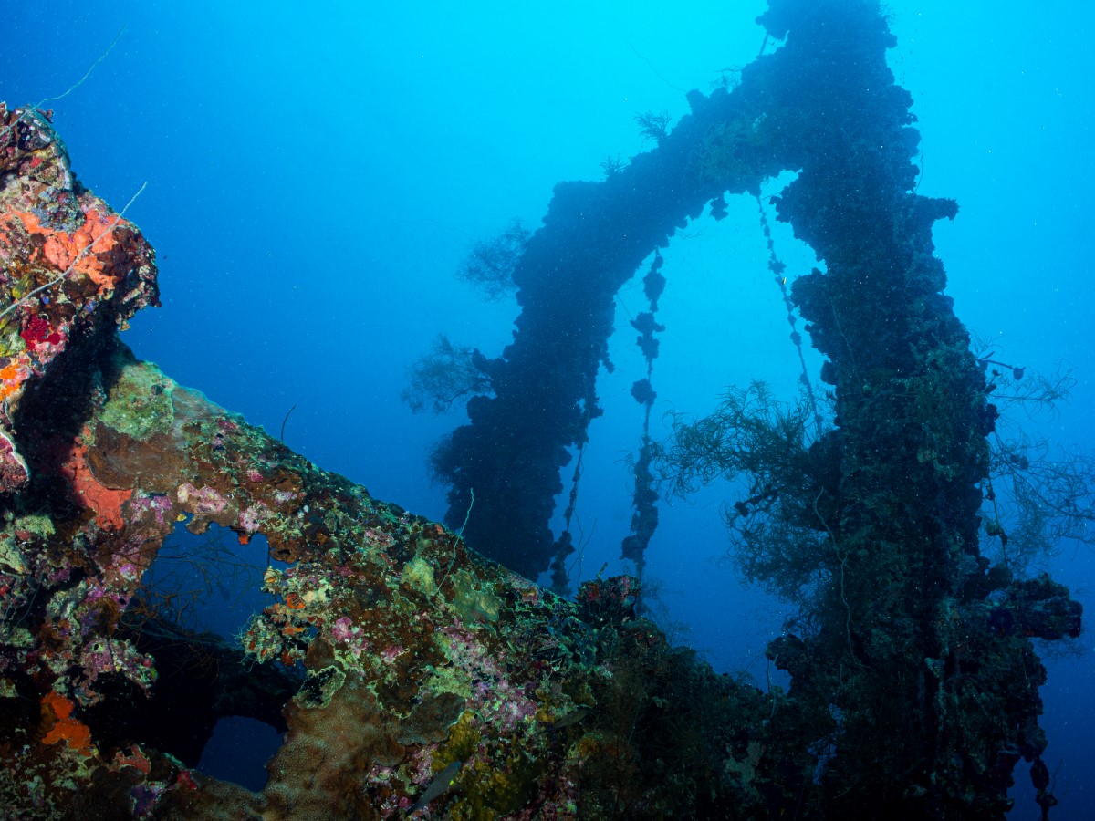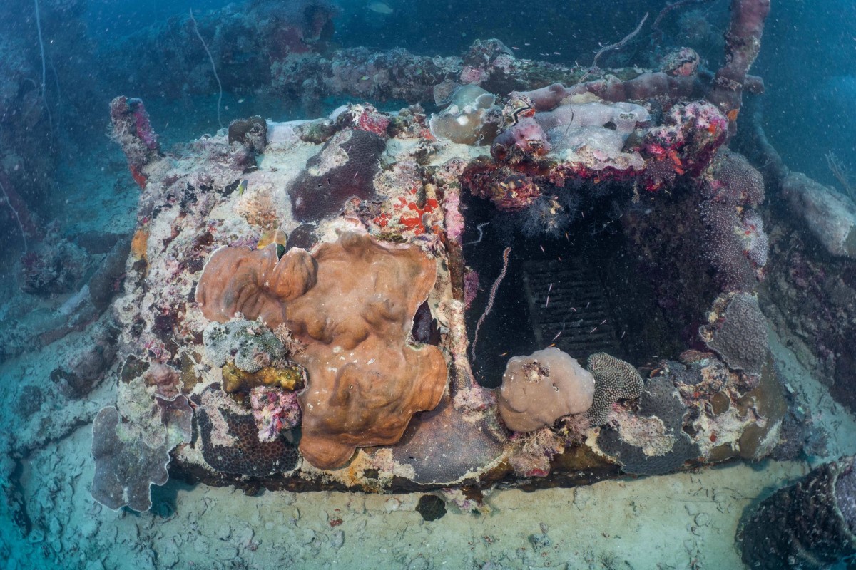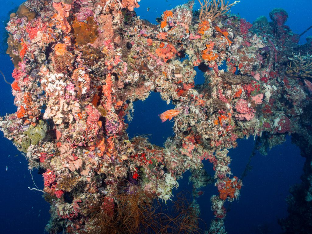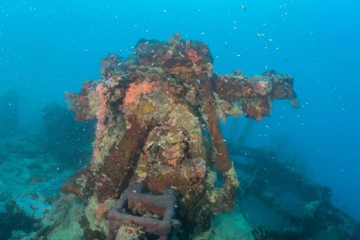 The usual abundance of colorful tropical fish can be found everywhere on the wreck, making it a vibrant and fascinating dive site.