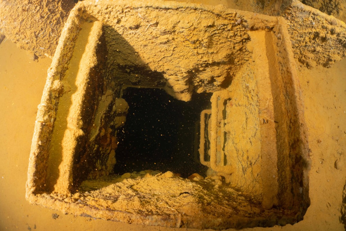 The ship’s identity was possible by the discovery of associated ceramics found aboard the wreck bearing the logo of the ship’s commercial owner Toyo Kisen Kaisha.