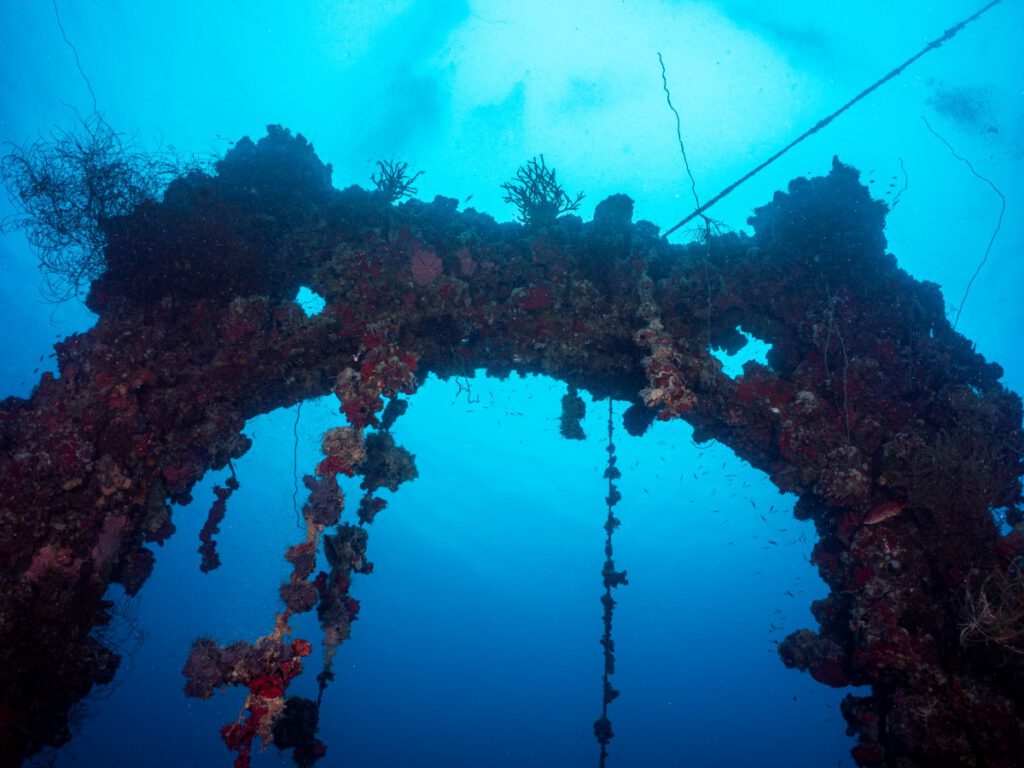 The Chuyo Maru has no marker buoy, so the dive guide will locate the wreck and use a lead weighted anchor to tie off the boat.