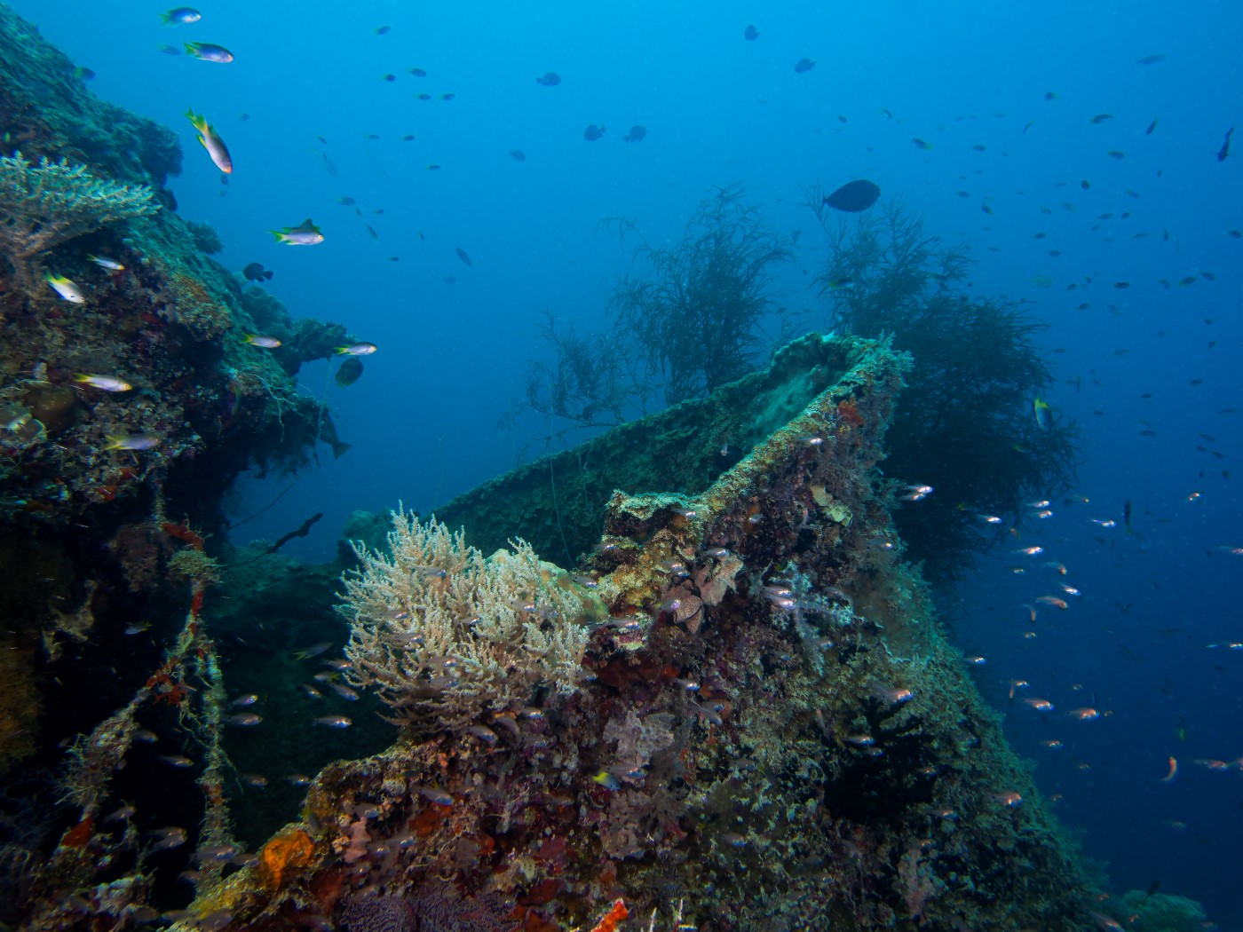 Inside, you’ll find schools of fish, some of which have made their home in the ship’s rusted steel beams.